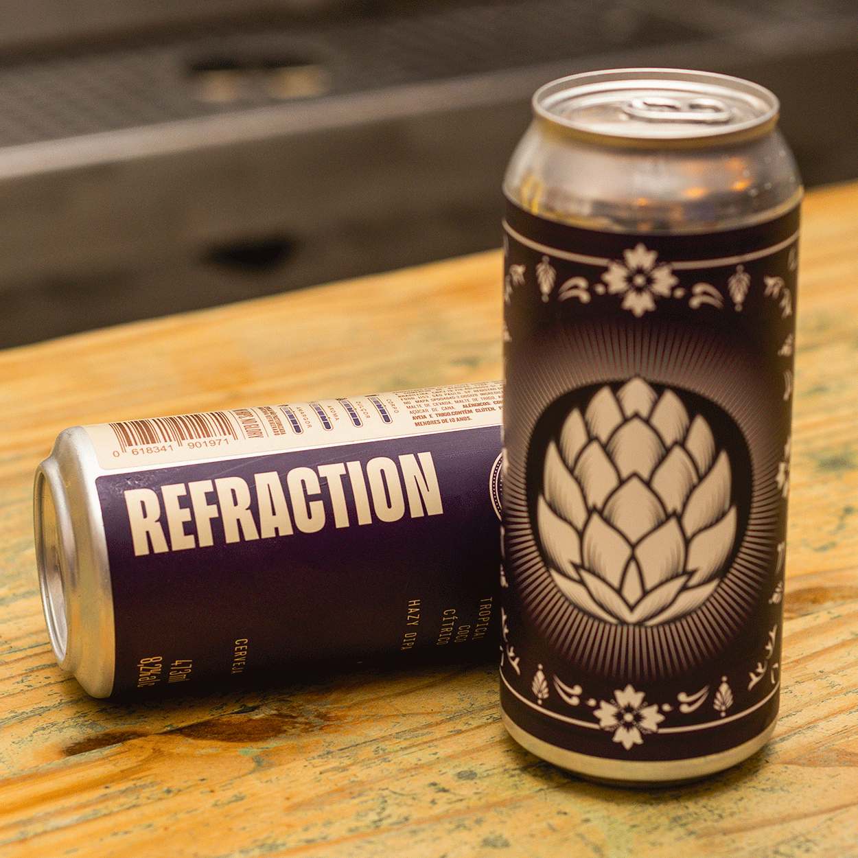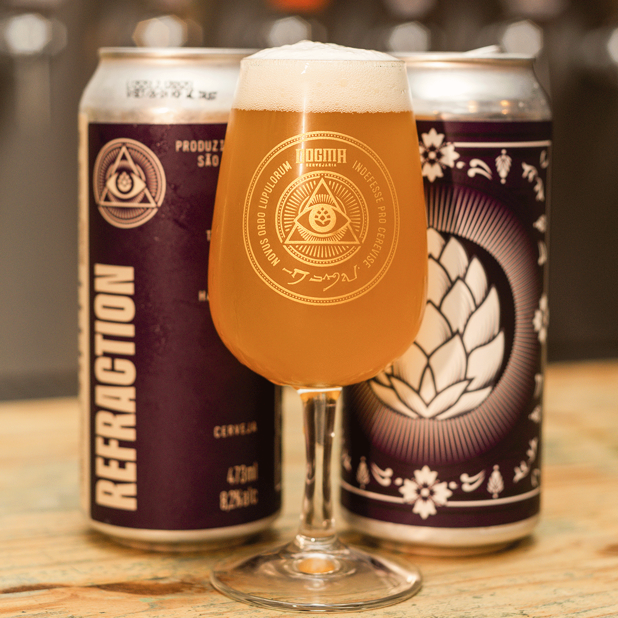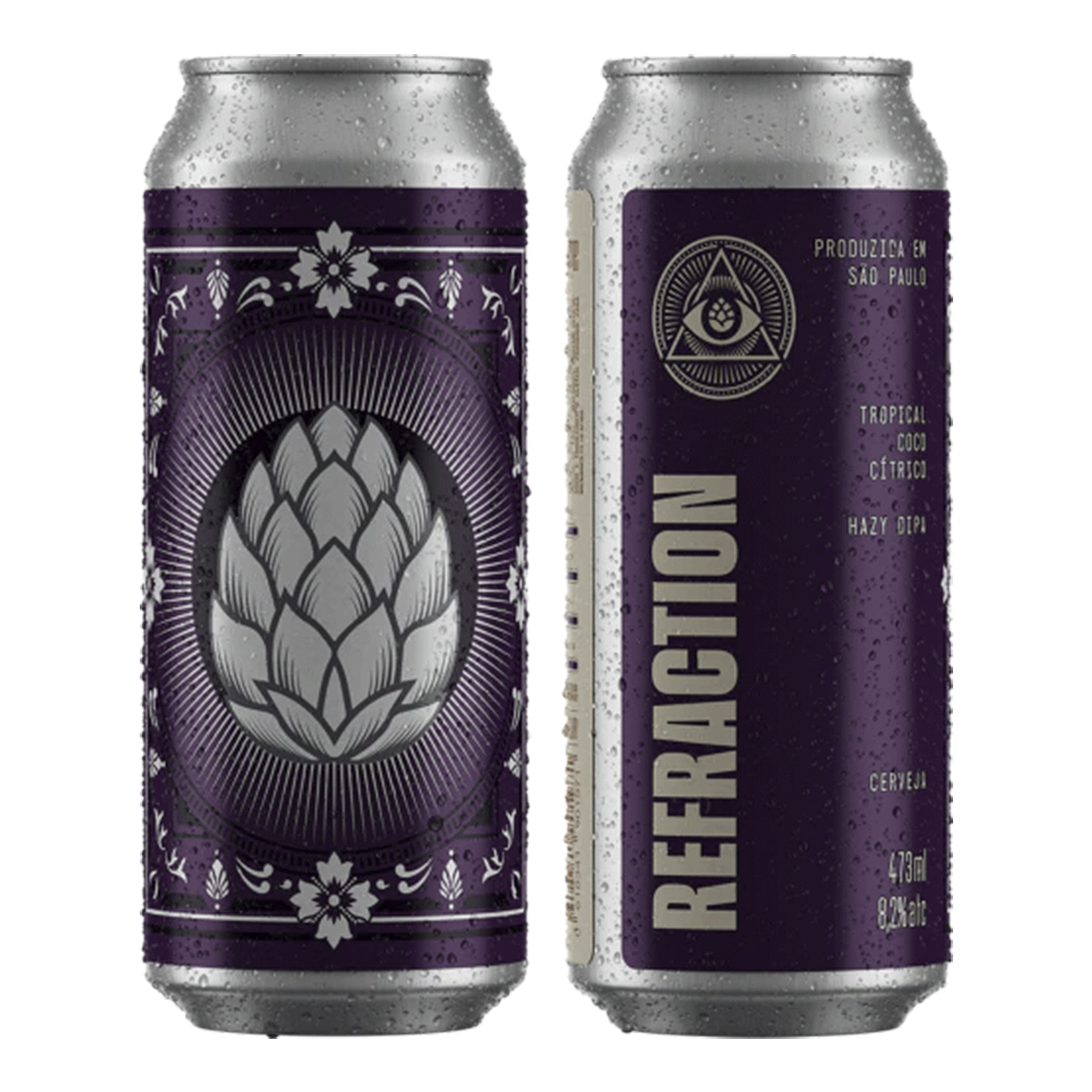 A Refraction marca o início da série Optical Phenomena, criada para explorar a intensidade de aroma e sabor das Hazy IPAs em bases mais leves e secas, sem perder a drinkability.